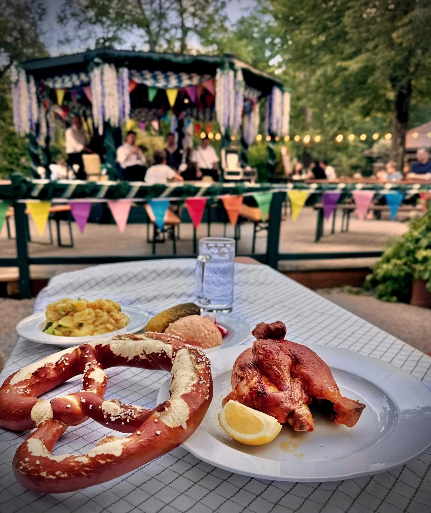 Wir lieben es, uns mit den leckeren gebrutzelten Hühnchen oder Rippchen, Brez‘n und Obazda, Steckerlfisch oder zimtzuckrigen Aus‘zogenen an den Musikpavillon zu setzen.