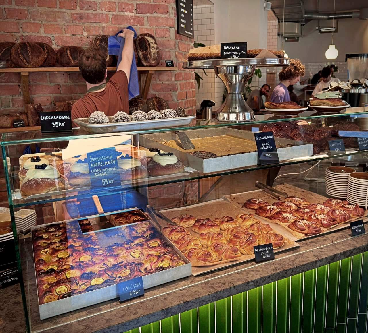 We make a brief detour to Svedjan Bageri, to grab generously filled chocolate croissants and crispy sourdough rolls.